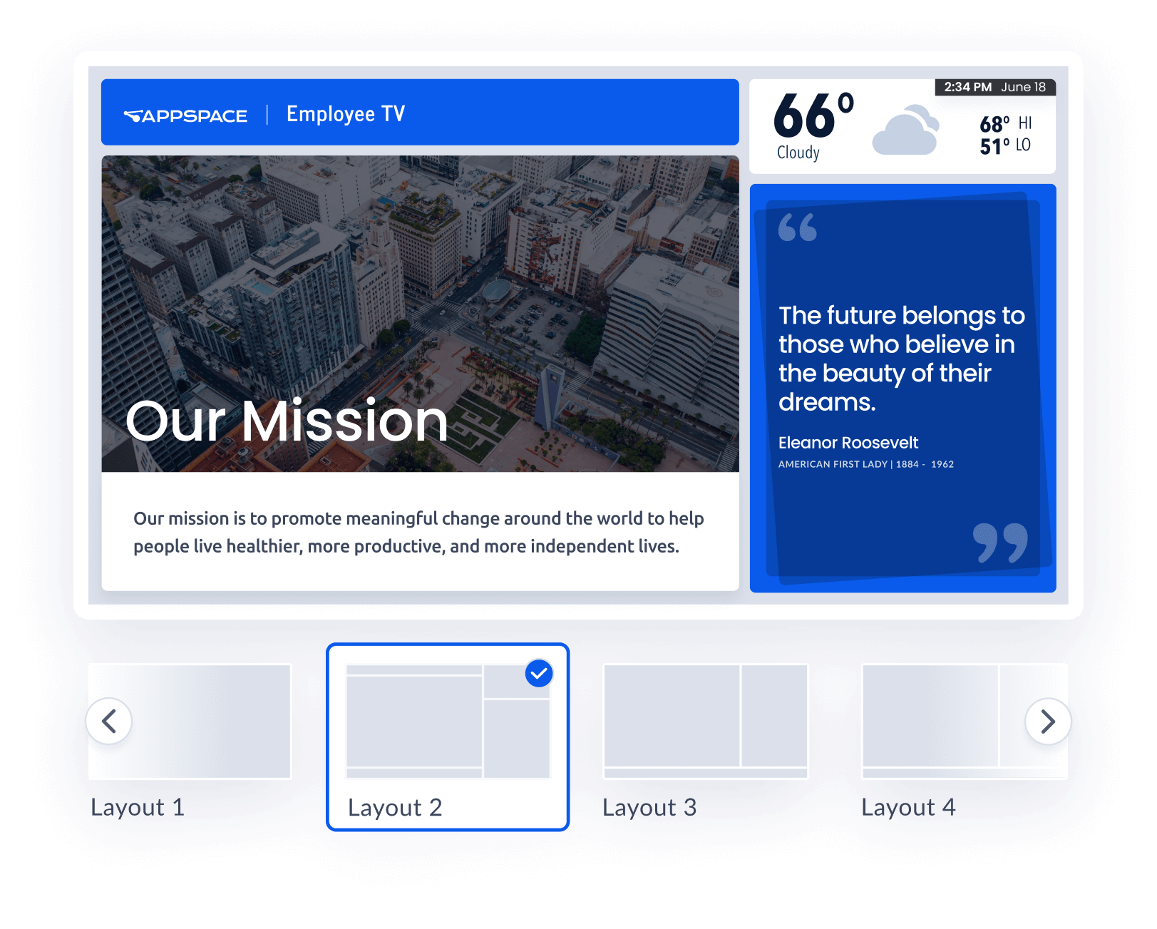 Appspace makes it easy to create user-friendly kiosk interfaces. Use our design tools to create clear layouts with large fonts, intuitive navigation, and your company's branding. We also offer pre-built templates to get you started quickly. And don't forget to test your designs with real users to ensure a smooth experience.